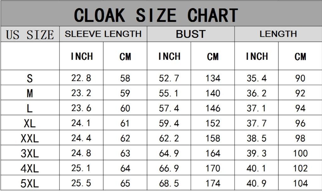 - Unisex Sizes: S/M/L/XL/XXL/XXXL/4XL/5XL