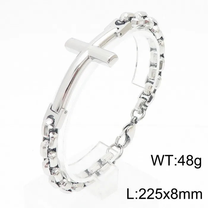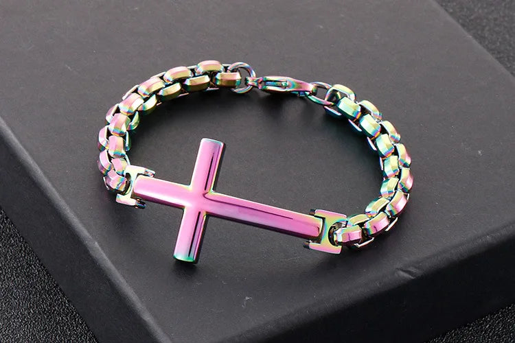 Our True Faith Cross bracelets are the perfect accessory for anyone looking to make a statement. Crafted with high-quality stainless steel, they won't wear out over time and can be enjoyed by both men and women.