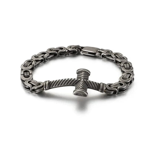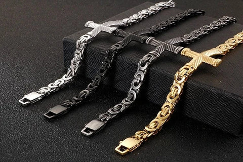 Our Byzantine Chain Cross Bracelet is a stunning piece of jewelry that combines the intricate beauty of the Byzantine chain design with the meaningful symbolism of the cross. Crafted from stainless steel, this bracelet is durable and built to last.