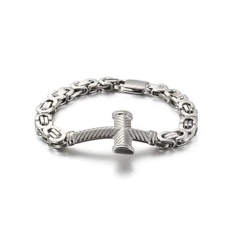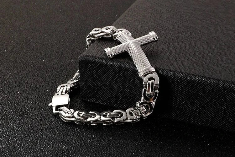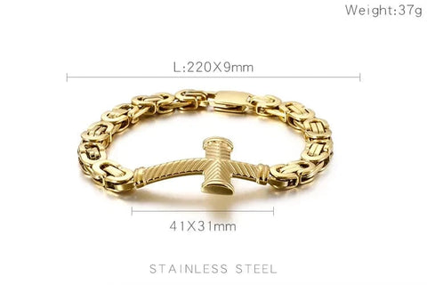 The cross pendant, which is a classic symbol of faith and spirituality, is attached to the chain, making this bracelet a perfect choice for those who want to express their beliefs through their fashion choices. Our Byzantine Chain Cross Bracelet is perfect for any occasion, whether you're dressing up for a formal event or just looking to add some style to your everyday outfit.