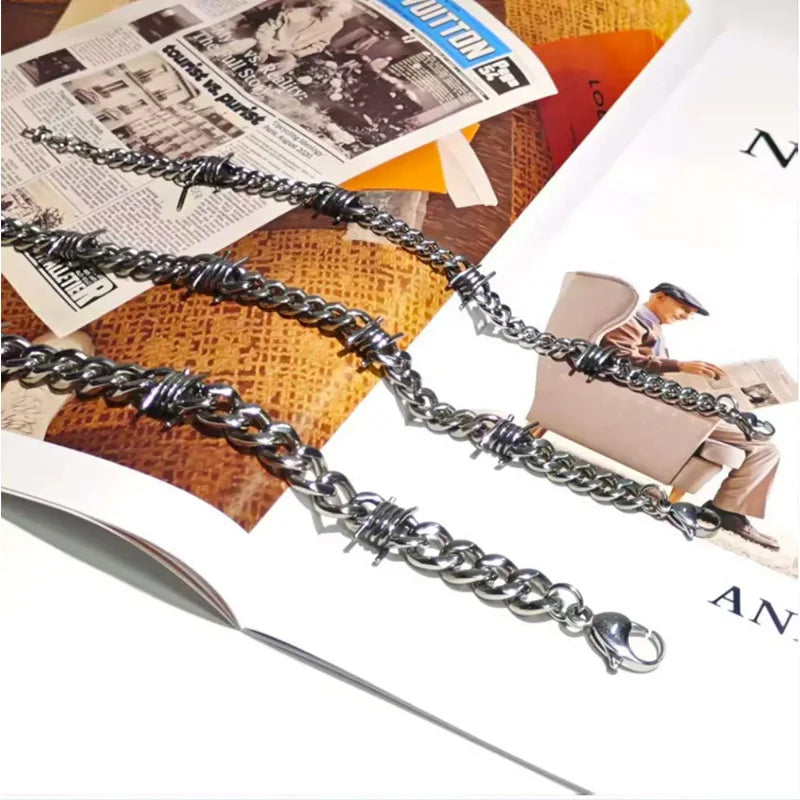 This barbed wire chain bracelet is the mark of those who don't follow — they lead. Crafted from heavy-duty stainless steel, it pairs the warrior aesthetic with everyday wearability. Bold enough to make a statement. Strong enough to last a lifetime.