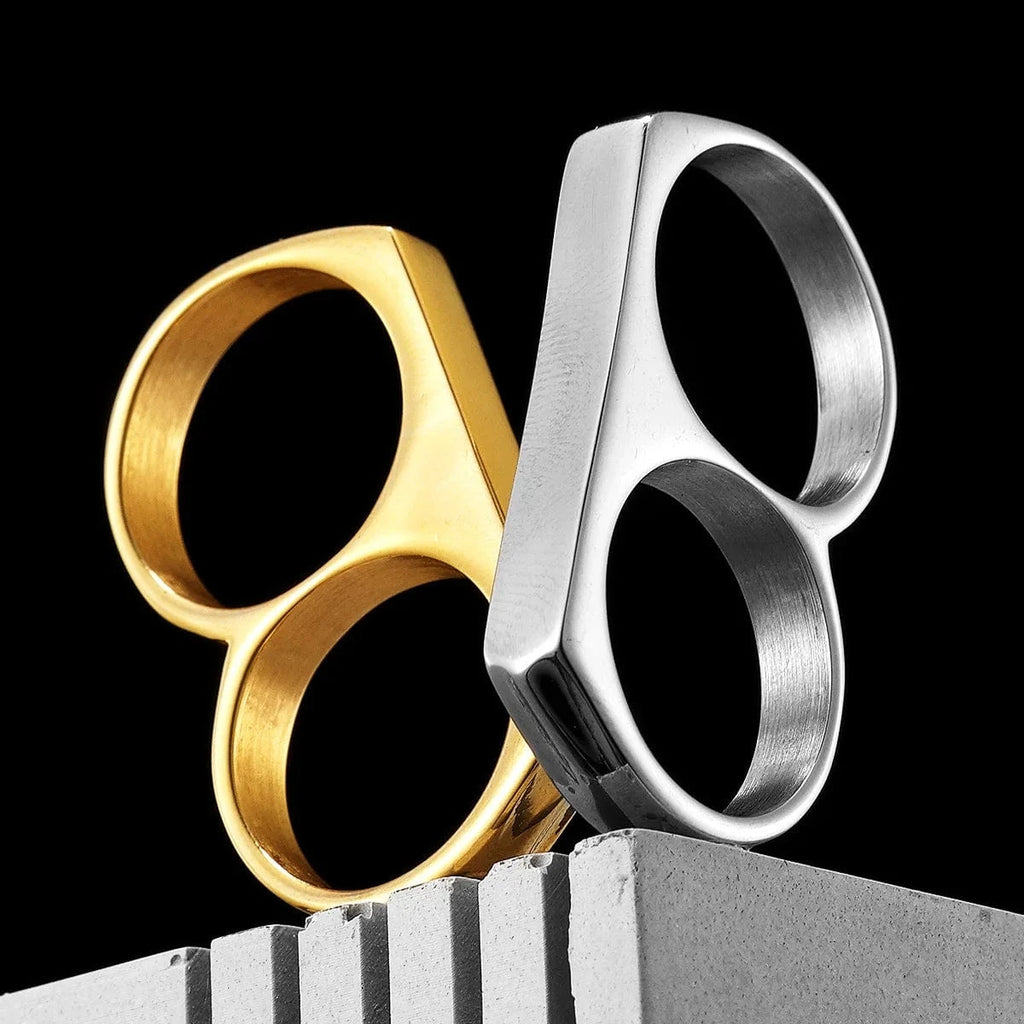Men's Titanium Steel Double Finger Ring | Punk Rock Hip Hop Style