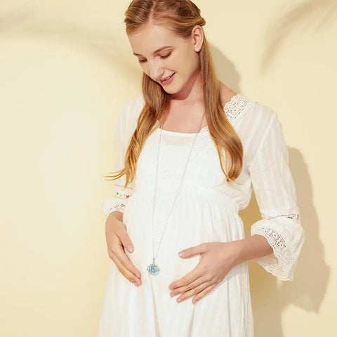Crafted from durable silver-plated copper and stainless steel, this eco-conscious piece features a symbolic Tree of Life design suspended from a 45-inch chain for the perfect fit. Whether worn during pregnancy, at baby showers, or as a cherished keepsake, this necklace blends timeless fashion with meaningful symbolism—a wearable reminder of new life and growth.