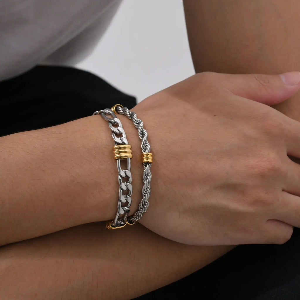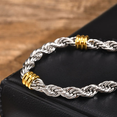 Make a powerful impression with our Cuban-Rope Chain Bracelets, the ultimate fusion of strength and elegance. Featuring interlocking Cuban links woven with rope-textured detailing, this bracelet captures attention with its distinctive three-dimensional design.