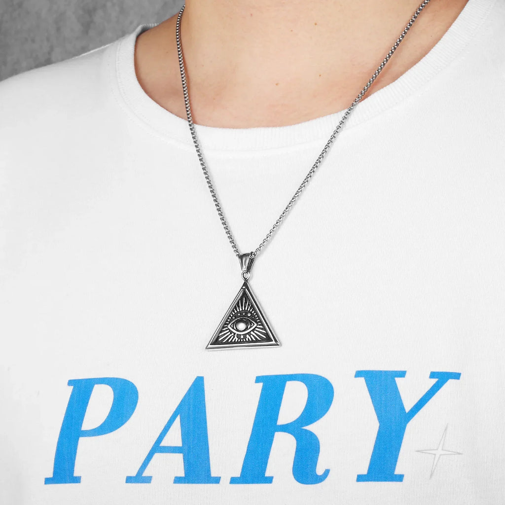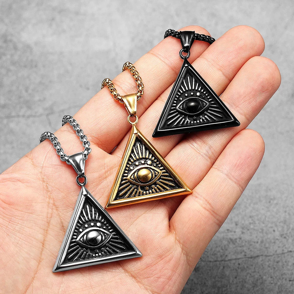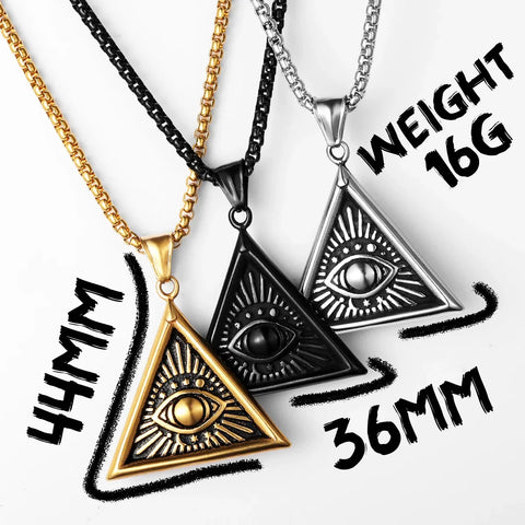 Embrace the mystique of ancient symbolism with this striking Masonic Illuminati Eye amulet necklace. Crafted from premium 316L stainless steel, this bold pendant channels esoteric wisdom and occult intrigue with its commanding all-seeing eye design.