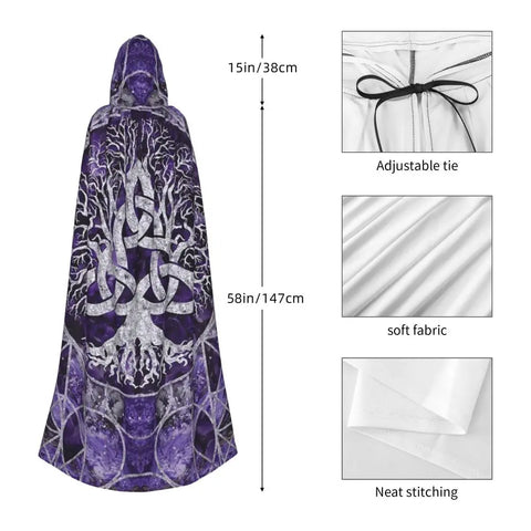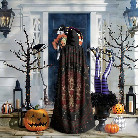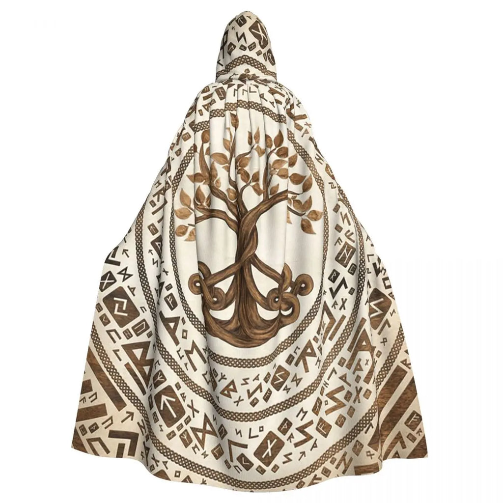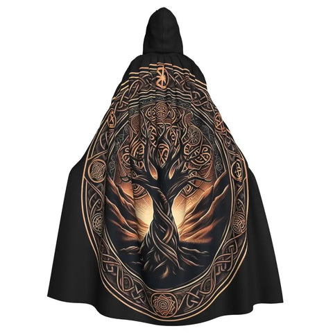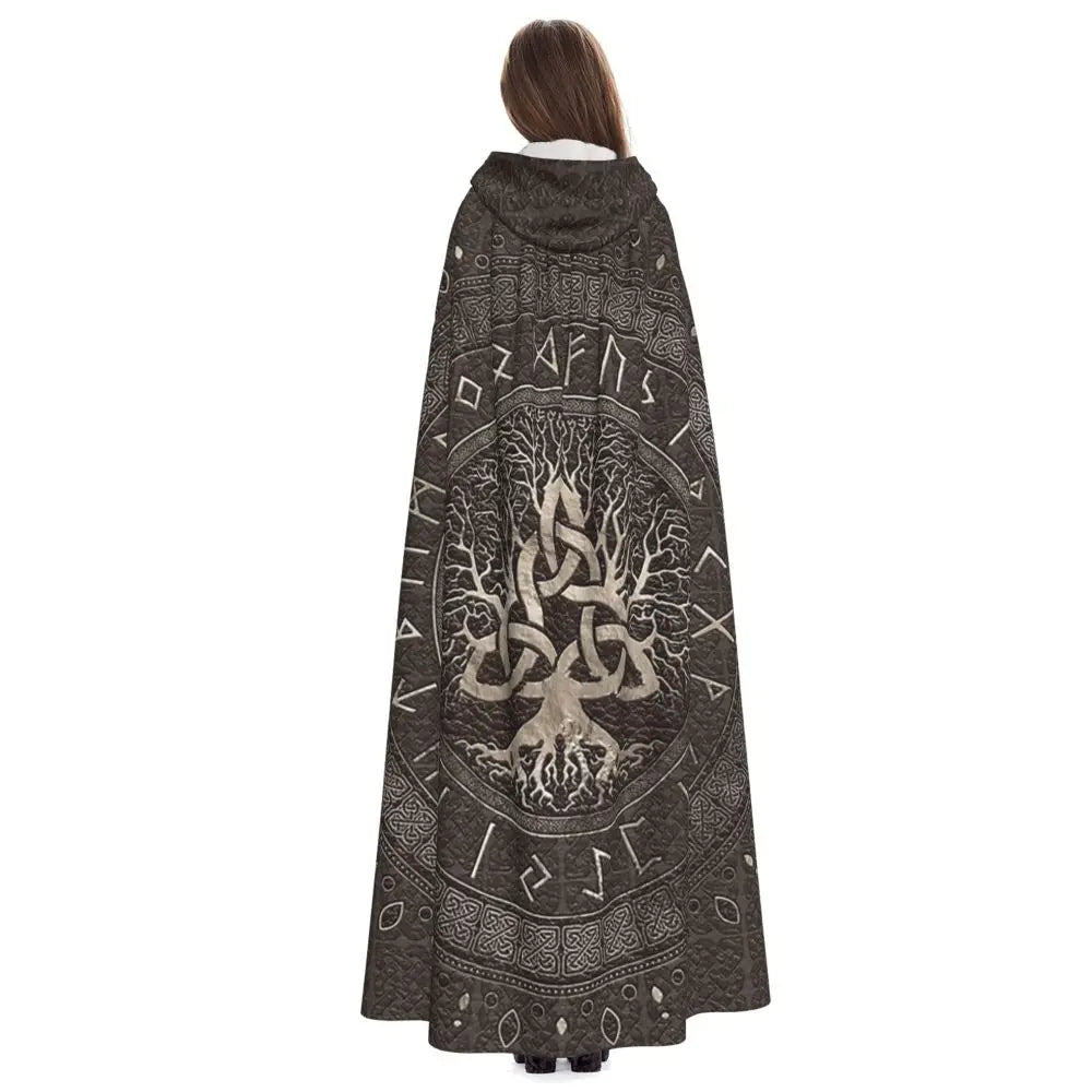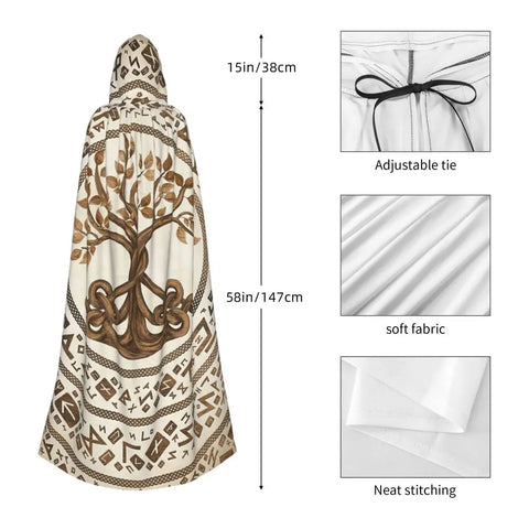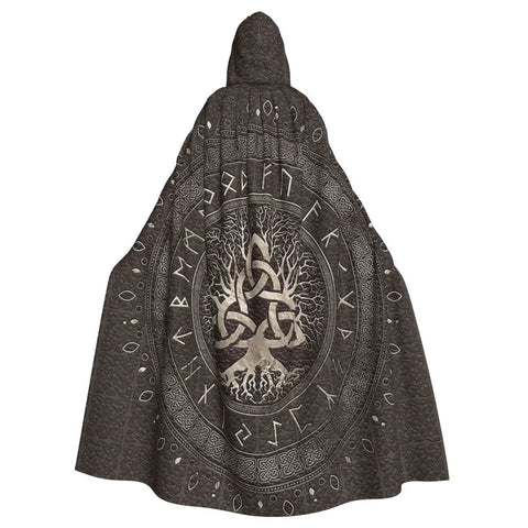 Embodying the mythic grandeur of Norse legend, the Yggdrasil Long Hooded Cloak commands presence with its expansive silhouette and dramatic drape. Crafted from gentle, non-irritating fabric engineered for durability, this statement piece features a generous hood and elegant bow-tie closure—no zippers to compromise its flowing aesthetic. Full-width printing ensures seamless visual impact across the garment.