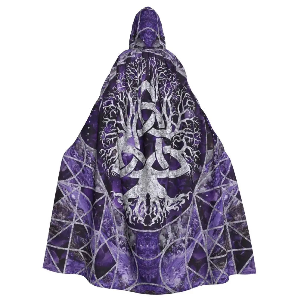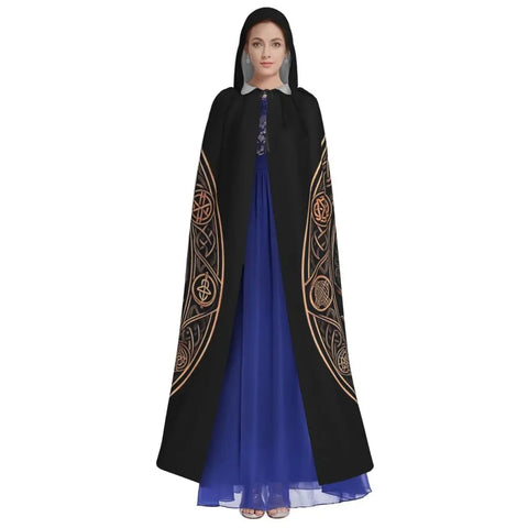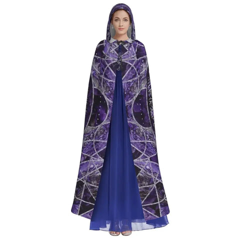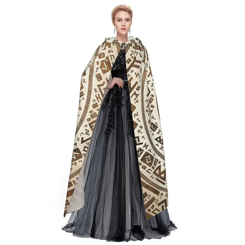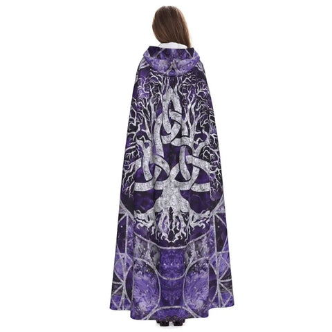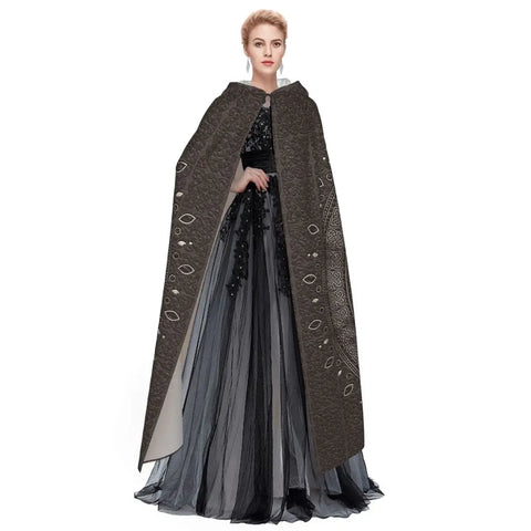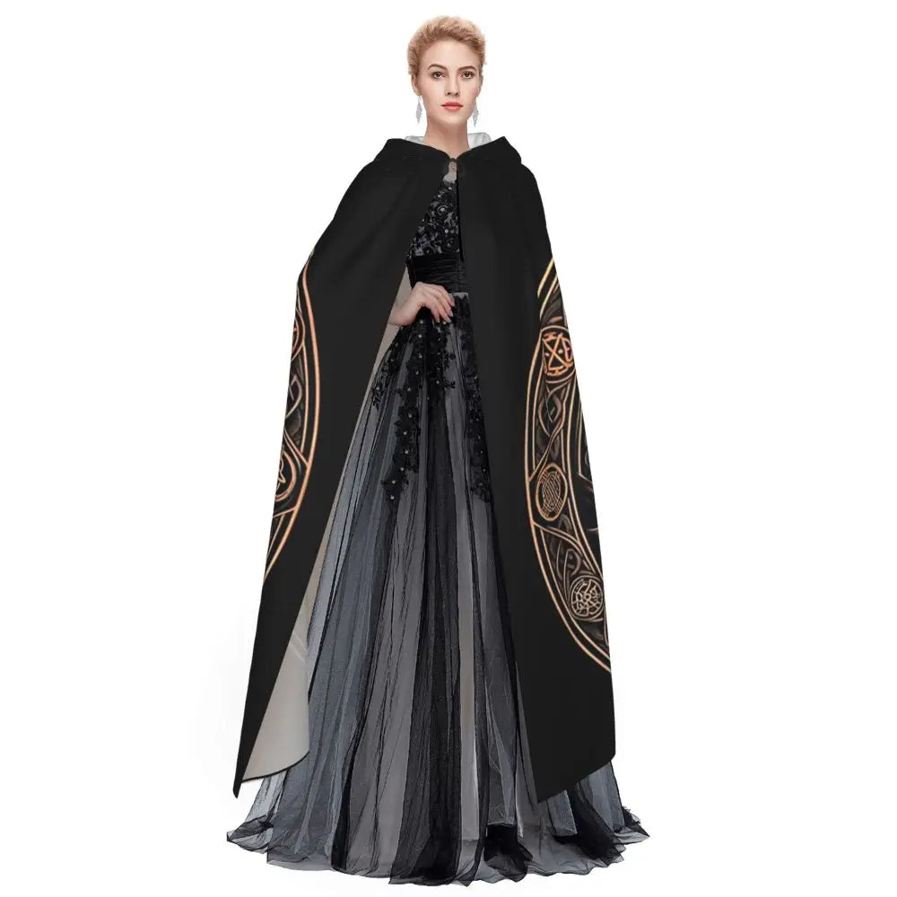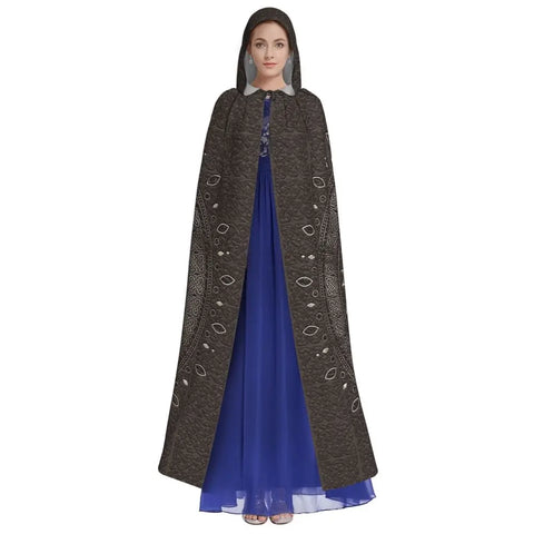 Embodying the mythic grandeur of Norse legend, the Yggdrasil Long Hooded Cloak commands presence with its expansive silhouette and dramatic drape. Crafted from gentle, non-irritating fabric engineered for durability, this statement piece features a generous hood and elegant bow-tie closure—no zippers to compromise its flowing aesthetic. Full-width printing ensures seamless visual impact across the garment.