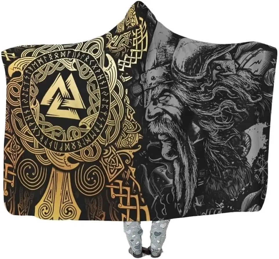 When the cold comes, warriors don't shiver — they wrap themselves in legend. This Viking hooded blanket cloak features the sacred Odin totem, bringing the mystical power of the Allfather into your home, your couch, and your soul.
