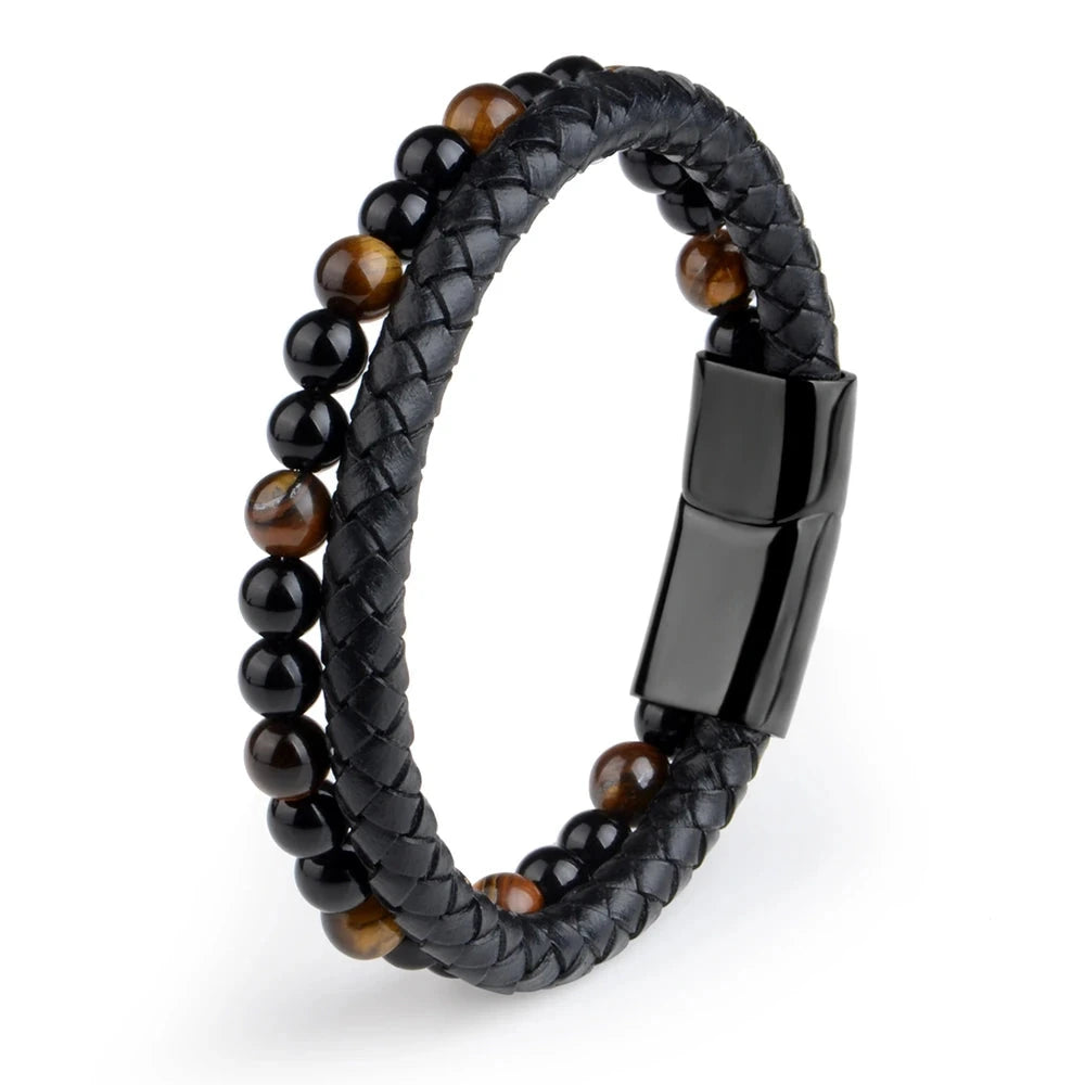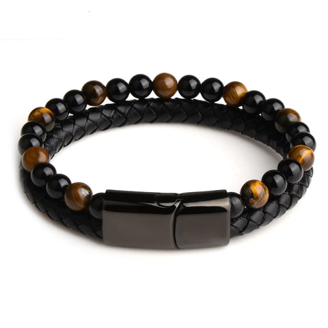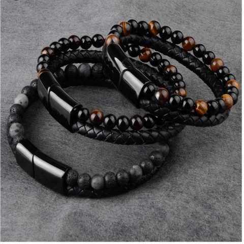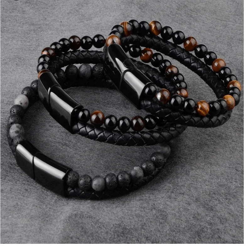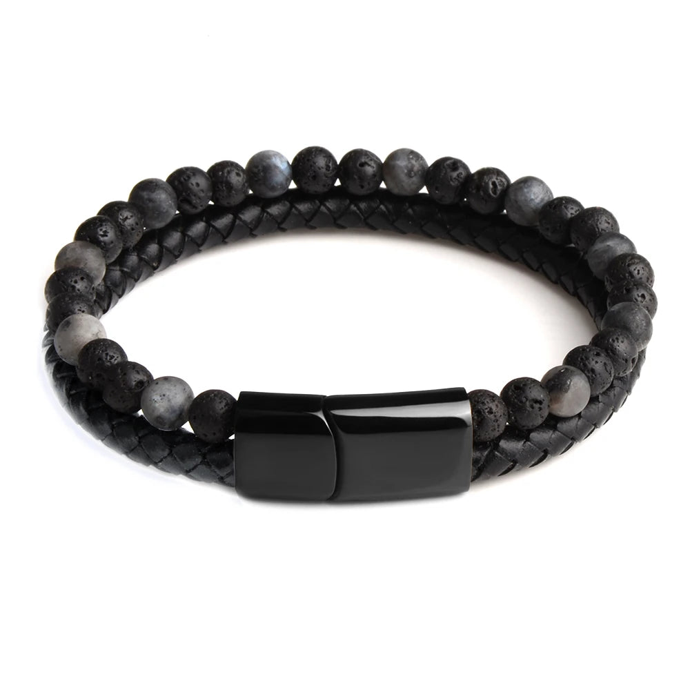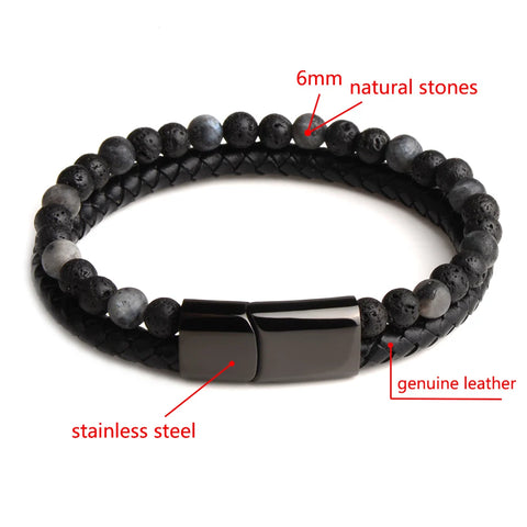 Inspired by nature, this leather bracelet features natural volcanic stones for a rustic and earthy touch. Perfect for adding a touch of spirituality to any outfit. Handcrafted with care, this beaded bracelet is a unique and stylish addition to your jewelry collection.