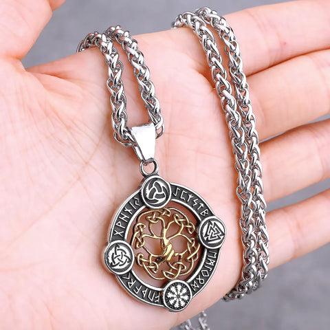 At the center of Norse cosmology stands Yggdrasil — the great World Tree, whose roots reach into the realm of the dead and whose branches touch the heavens. Odin himself hung from its branches for nine days to receive the wisdom of the runes. This Viking Tree of Life Necklace carries that sacred symbol, forged in stainless steel and available in multiple styles to match your path through the nine worlds.