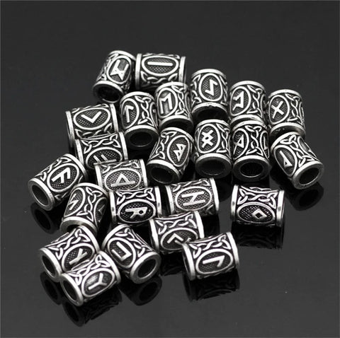 These Viking Beard Rings 24 pieces Rune Beads gift set contains all the Runic symbols of the Elder Futhark alphabet.